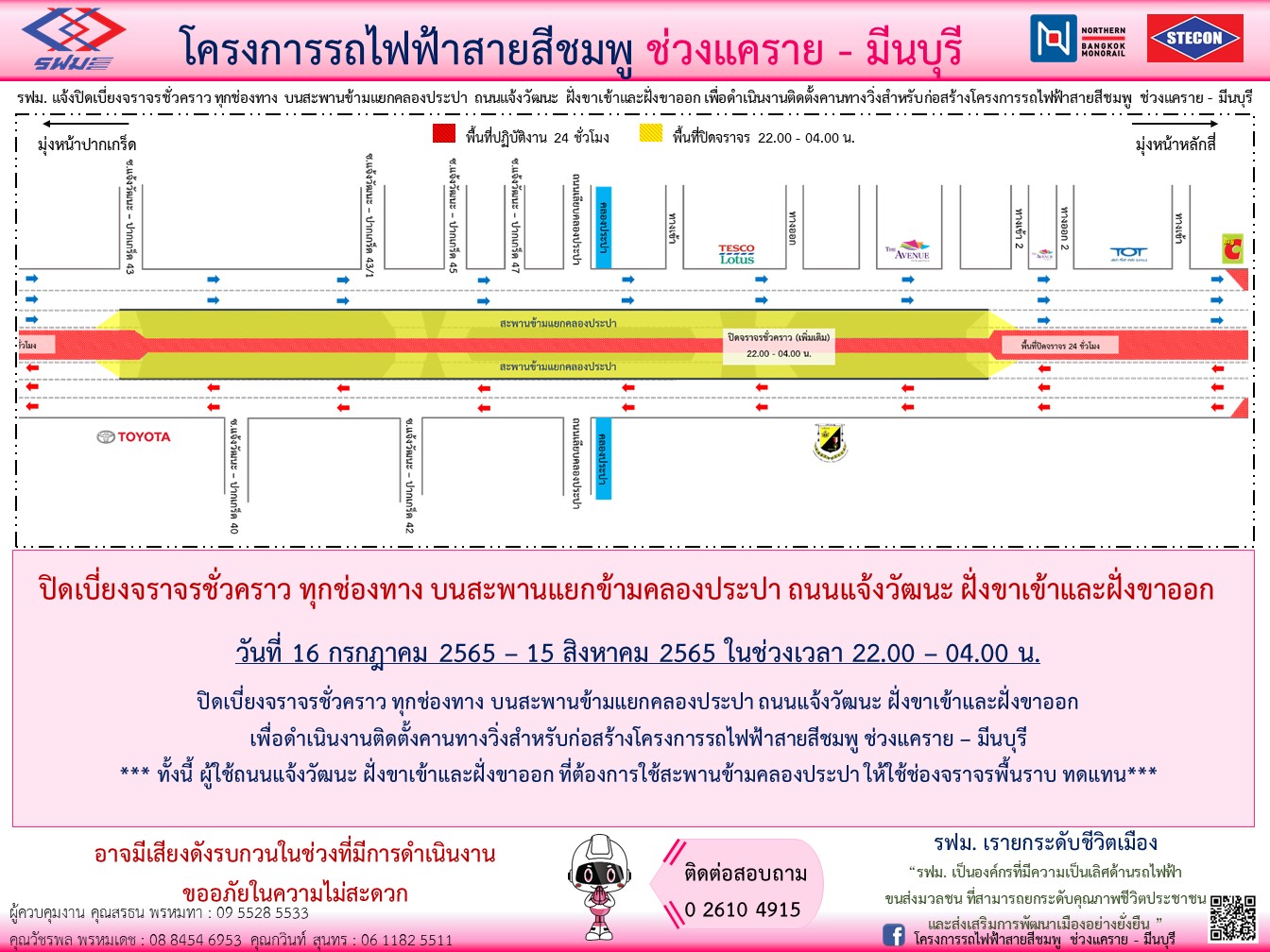 ปิดเบี่ยงจราจรชั่วคราวทุกช่องทาง บนถนนแจ้งวัฒนะ ฝั่งขาเข้าและฝั่งขาออก และบนสะพานข้ามวงเวียนบางเขน ฝั่งขาเข้าและฝั่งขาออก เพื่อดำเนินงานรื้อย้ายสะพานลอย