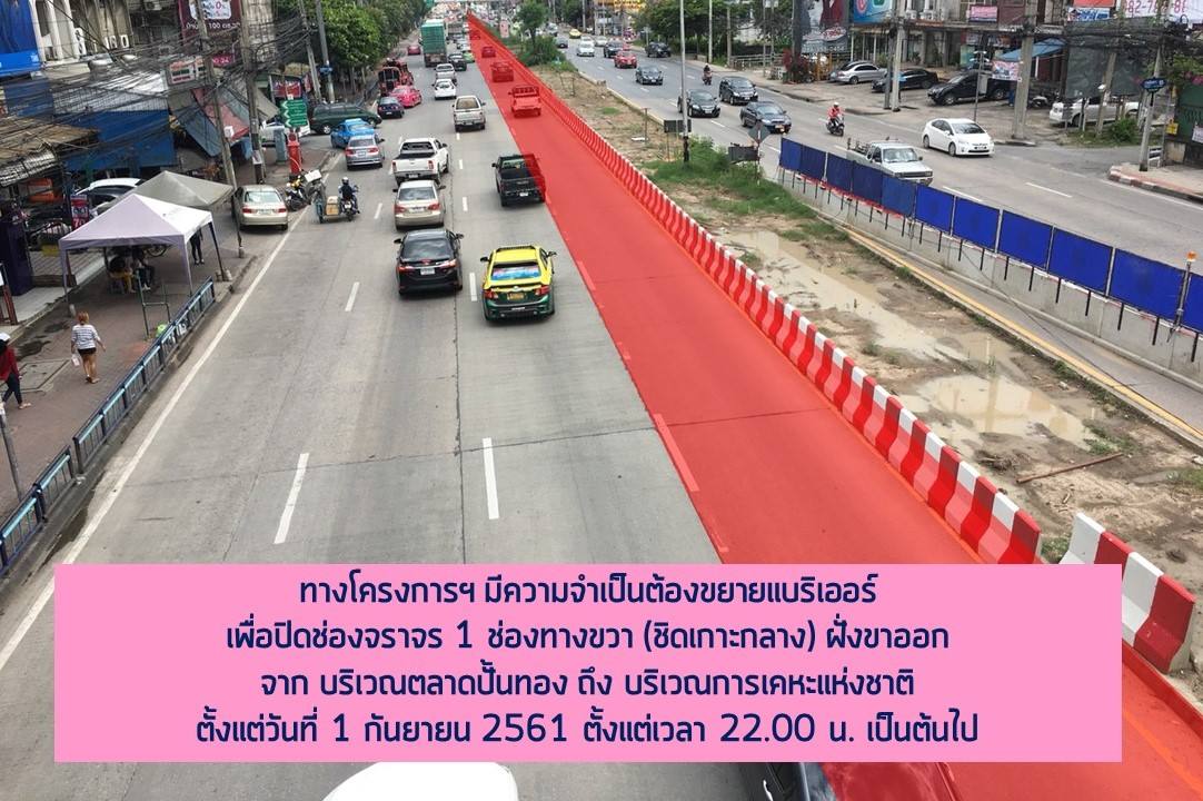 เลื่อนการปิดช่องจราจร 1 ช่องทางขวา (ชิดเกาะกลาง) ฝั่งขาเข้าและขาออก 2 จุด