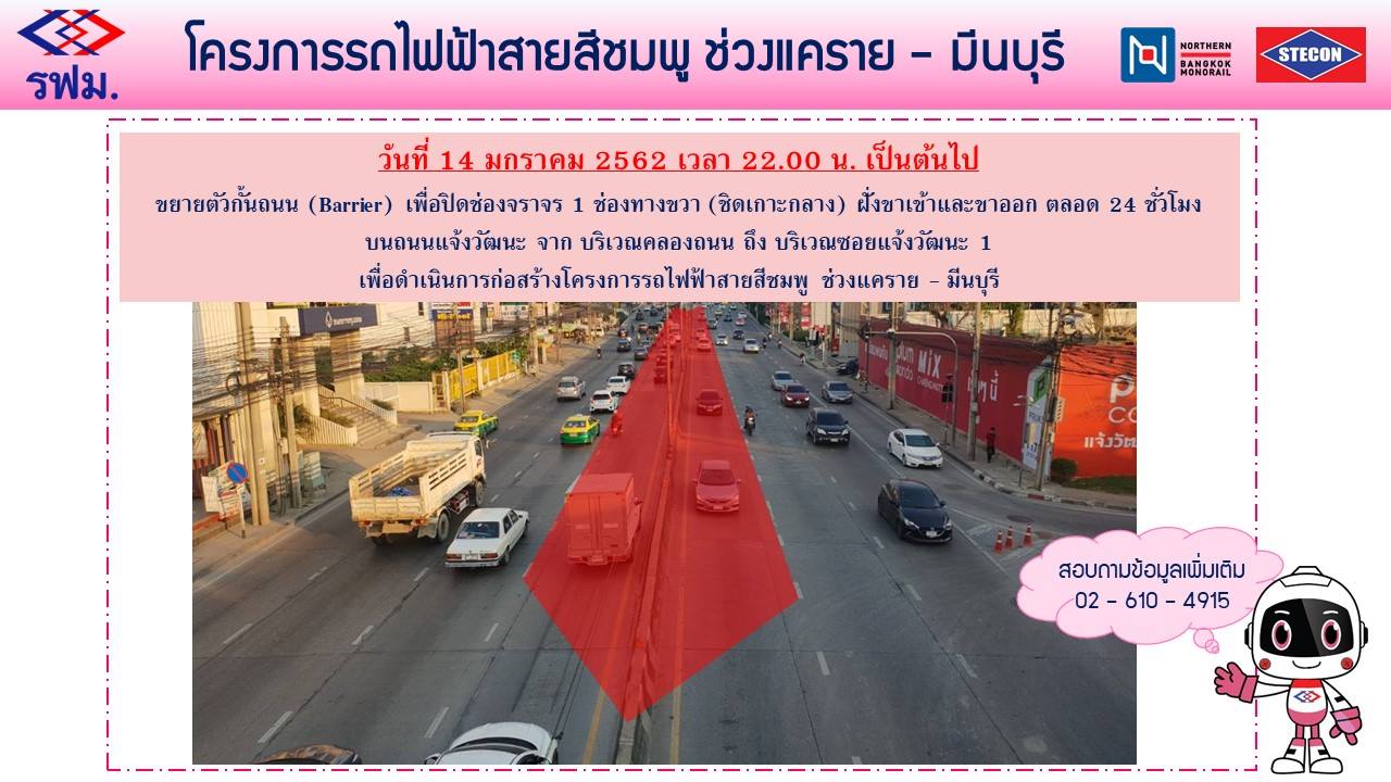 ปิดเบี่ยงจราจรชั่วคราวเพิ่มเติม บนถนนแจ้งวัฒนะ ฝั่งขาเข้า เพื่อดำเนินงานรื้อย้ายระบบสาธารณูปโภค วันที่ 8 พฤศจิกายน 2562 – วันที่ 31 มกราคม 2563