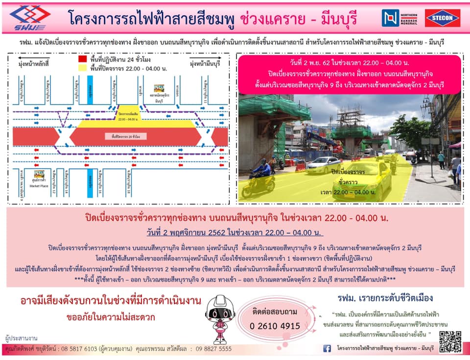 แจ้งปิดเบี่ยงจราจรชั่วคราวบนถนนรามอินทรา ฝั่งขาออก เพื่อติดตั้งคานสถานี วันที่ 11 พฤศจิกายน 2562 และวันที่ 13 พฤศจิกายน 2562