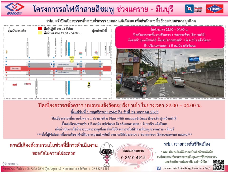 ปิดเบี่ยงจราจรชั่วคราว บนถนนแจ้งวัฒนะ ฝั่งขาเข้า เพื่อดำเนินการติดตั้งคานทางวิ่ง (Guideway Beam) วันที่ 5 – 8 พฤศจิกายน 256