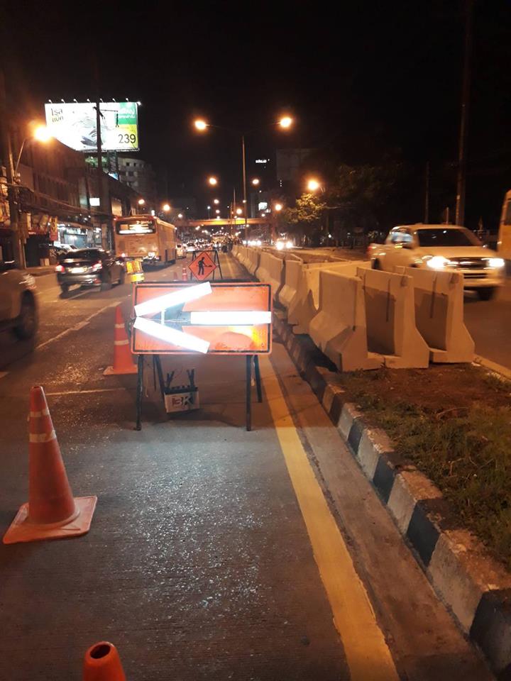 ดำเนินการขยับตัวกั้นถนน (Barrier) เข้ามาชิดกับพื้นที่ทำงานเพิ่มขึ้น และได้ดำเนินการเปลี่ยนแผงผ้าใบบนถนนแจ้งวัฒนะ
