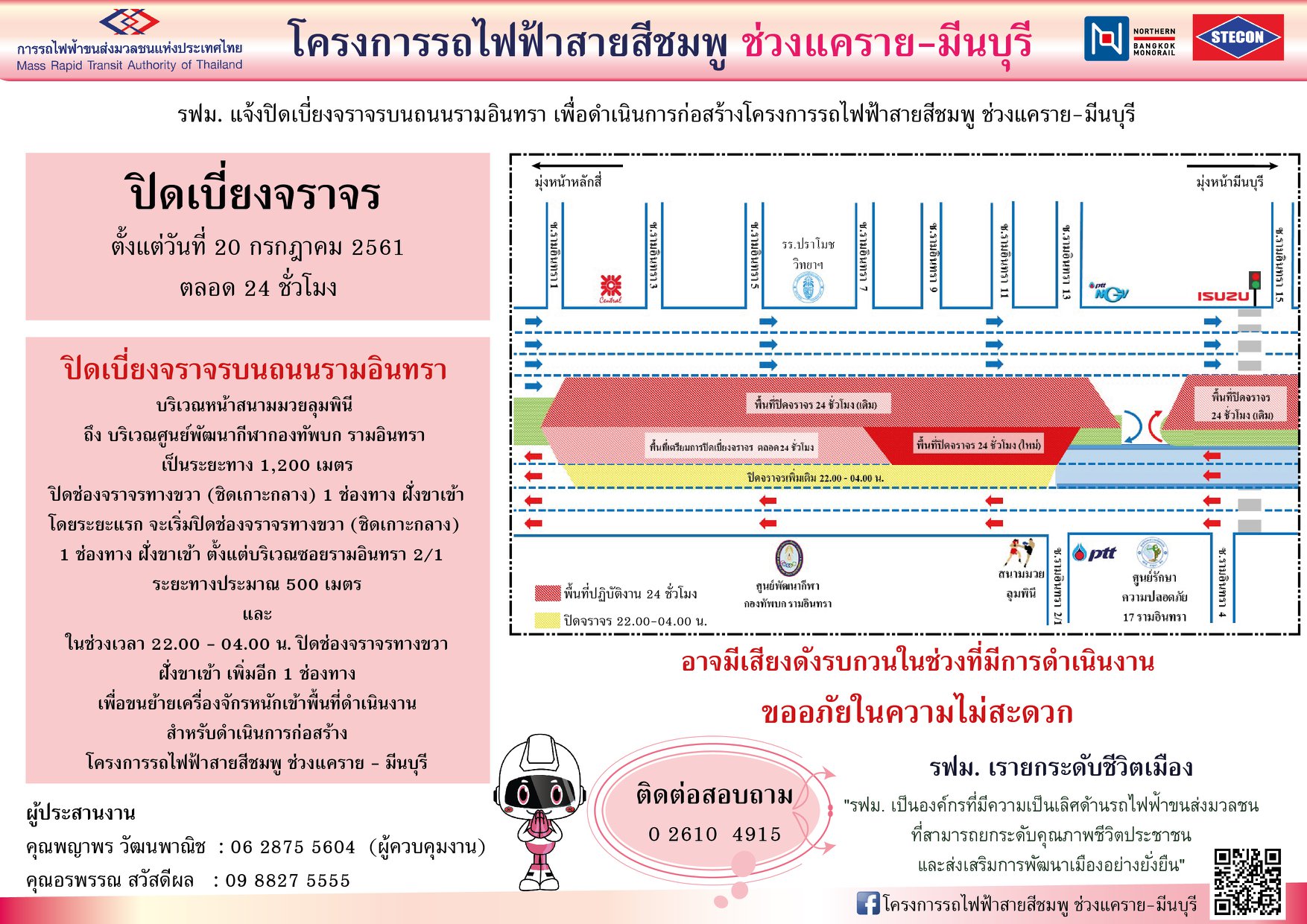รฟม. แจ้งปิดเบี่ยงจราจรบนถนนรามอินทรา ฝั่งขาเข้า