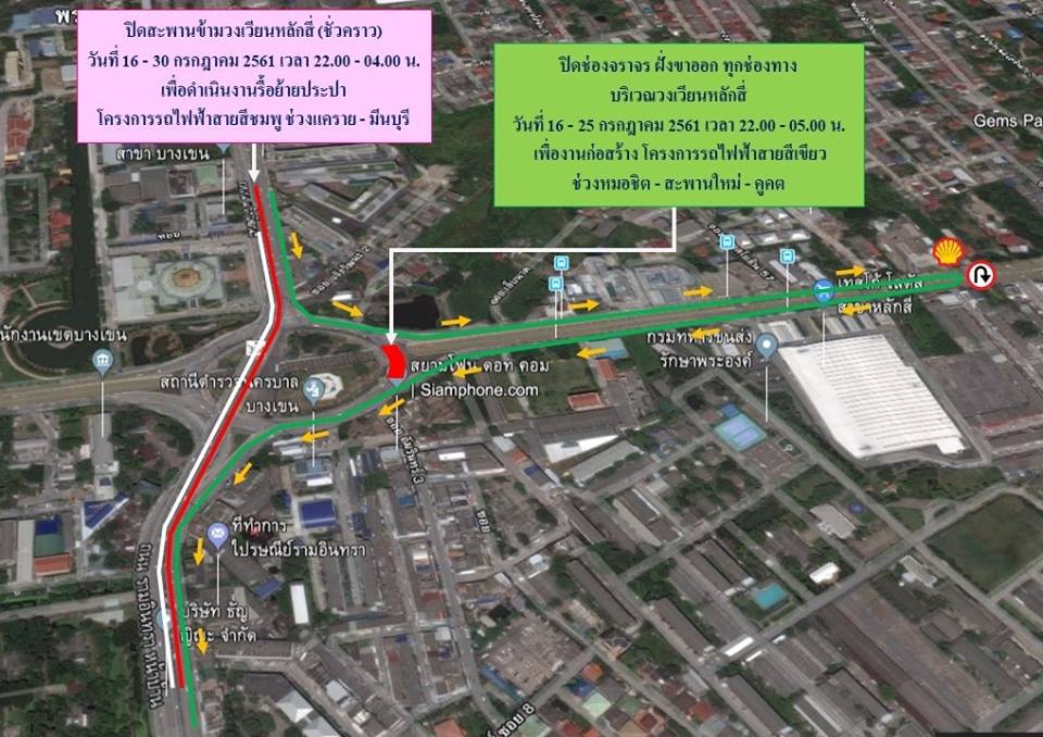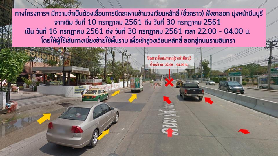 เลื่อนการปิดสะพานข้ามวงเวียนหลักสี่ (ชั่วคราว) ฝั่งขาออก มุ่งหน้ามีนบุรี