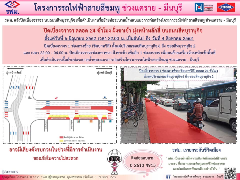 รฟม. แจ้งปิดเบี่ยงจราจรบนสะพานข้ามแยกคลองประปา แนวเส้นทึบด้านขวาสุด (ชิดแนวสะพาน) ฝั่งขาเข้าและขาออก วันที่ 10 พฤษภาคม 2562 – 9 พฤศจิกายน 2562 ตลอด 24 ชั่วโมง