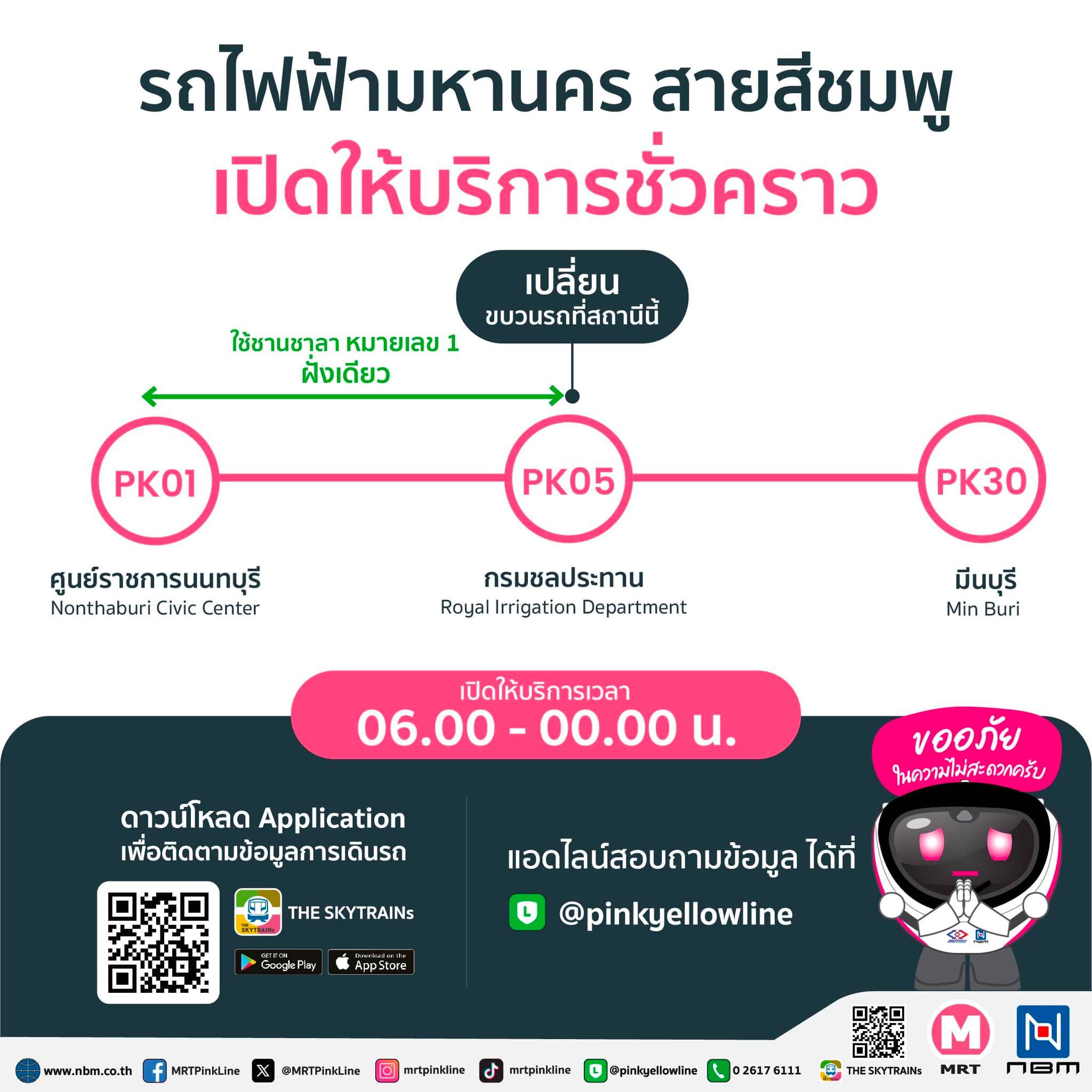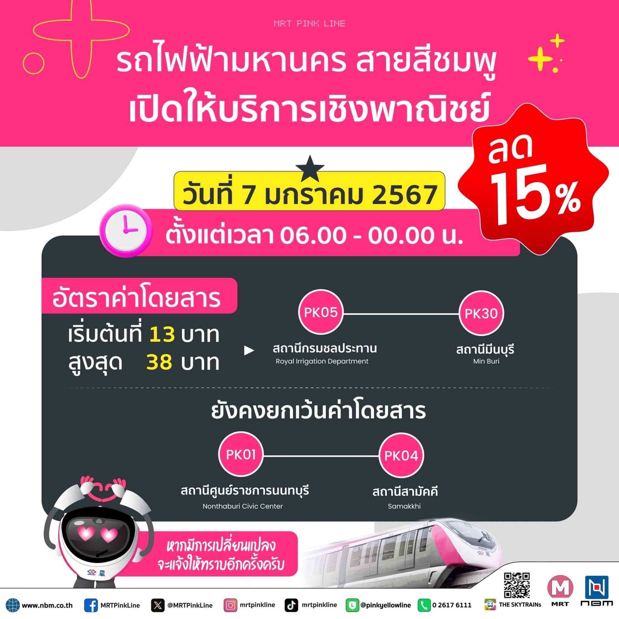 รถไฟฟ้ามหานคร สายสีชมพู เตรียมเปิดให้บริการเชิงพาณิชย์ 7 มกราคม นี้ เป็นต้นไป