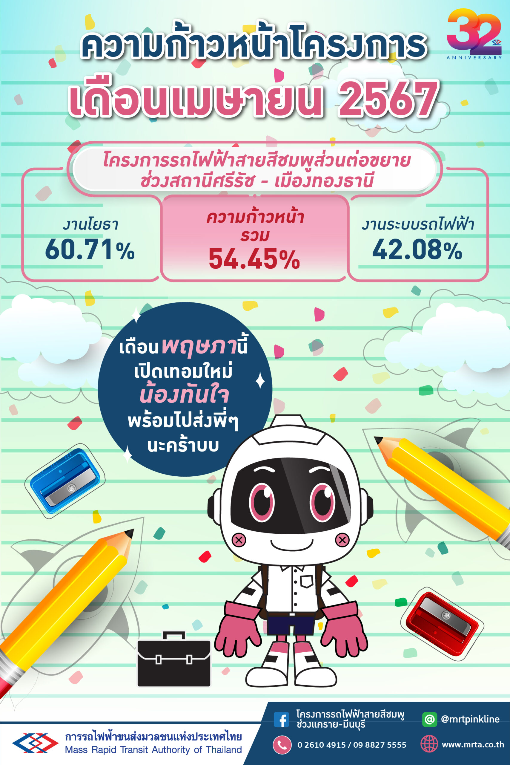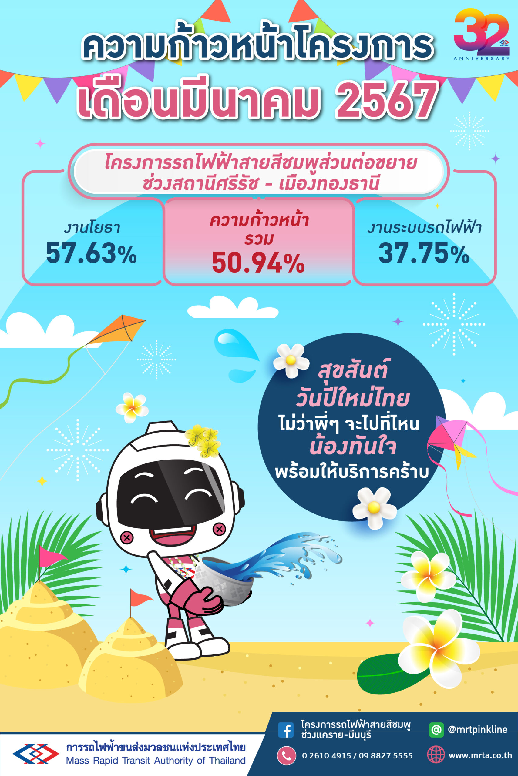 ความก้าวหน้าโครงการ เดือนเมษายน 2567 ช่วงสถานีศรีรัช – เมืองทอง